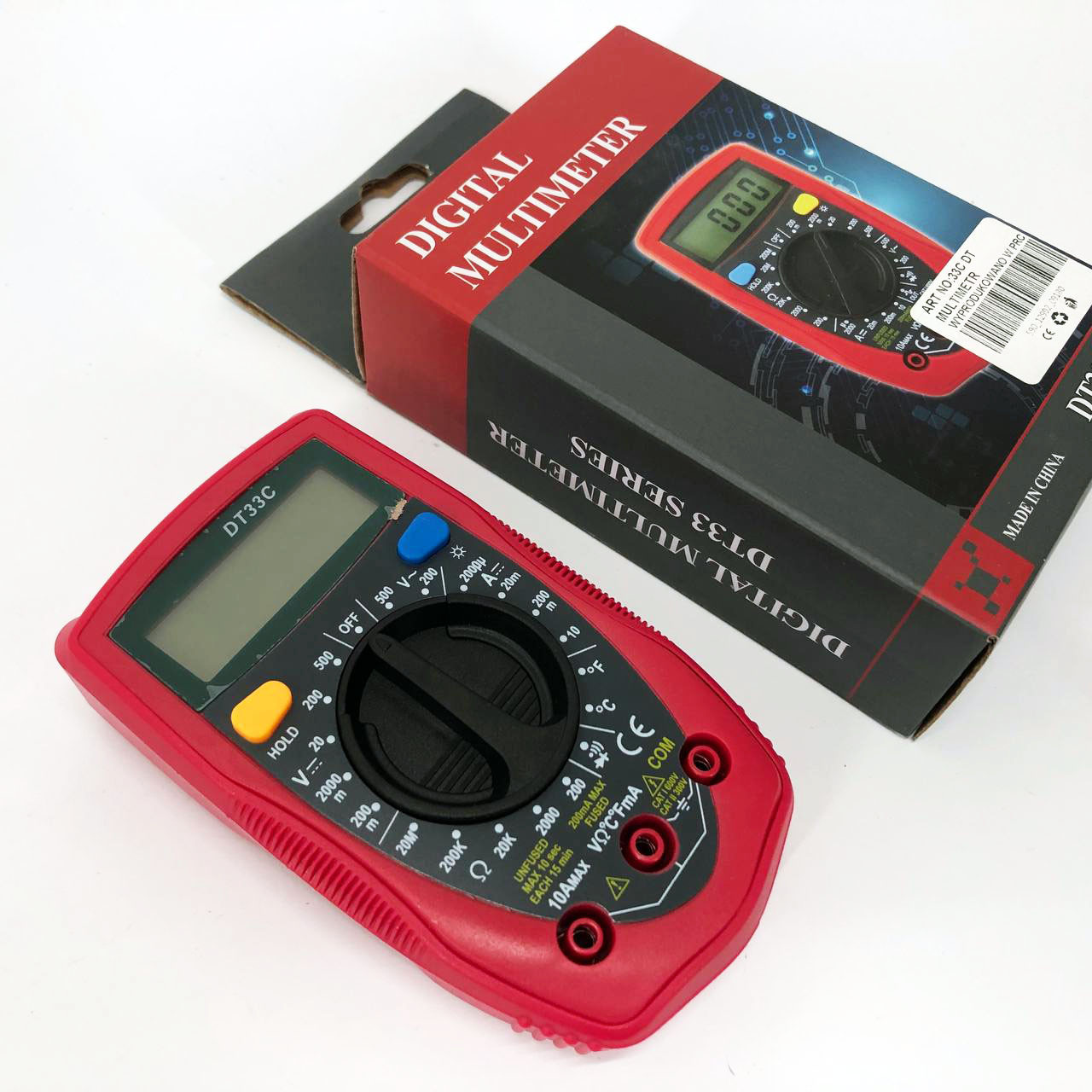 Кишеньковий цифровий мультиметр DT33c вимірює постійний і змінний струм, змінну напругу, опір, температуру, а також використовується для продзвонювання ланцюга та тестування діодів