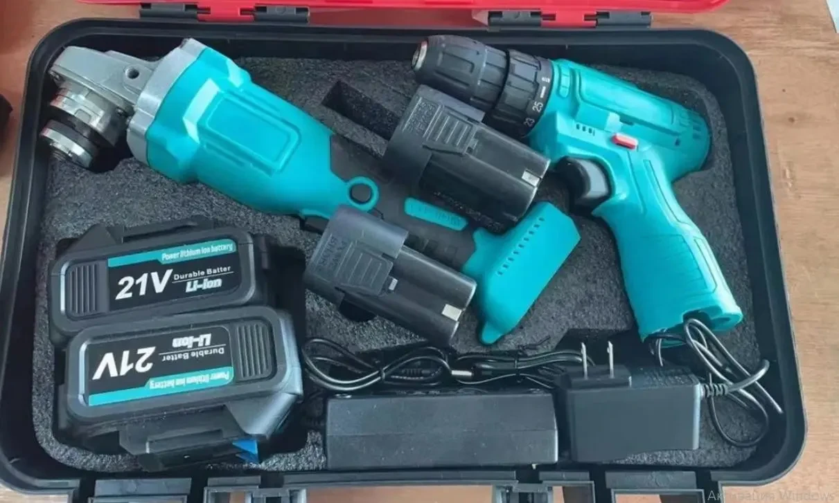 Комплектація набору: кутова акумуляторна шліфувальна машина AG 24/125, акумуляторний шуруповерт 12в, 2 акумуляторні батареї 5А/год, зарядний пристрій, кейс для зберігання інструменту.